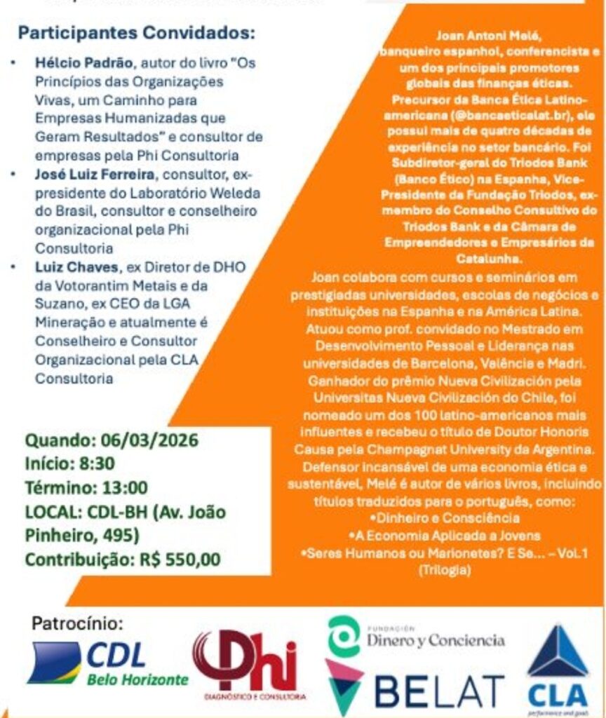 Joan Antoni Molé, banqueiro espanhol, conferencista e um dos principais promotores globais das finanças éticas. Precursor da Banca Ética Latino-americana (@bancaeticalat.br) ele possui mais de quatro décadas de experiência no setor bancário. Foi Subdiretor-geral do Triodos Bank (Banco Ético) na Espanha, vice-presidente da Fundação Triodos, ex-membro do Conselho Consultivo do Triodos Bank e da Câmara de Empreendedores e Empresários da Catalunha
