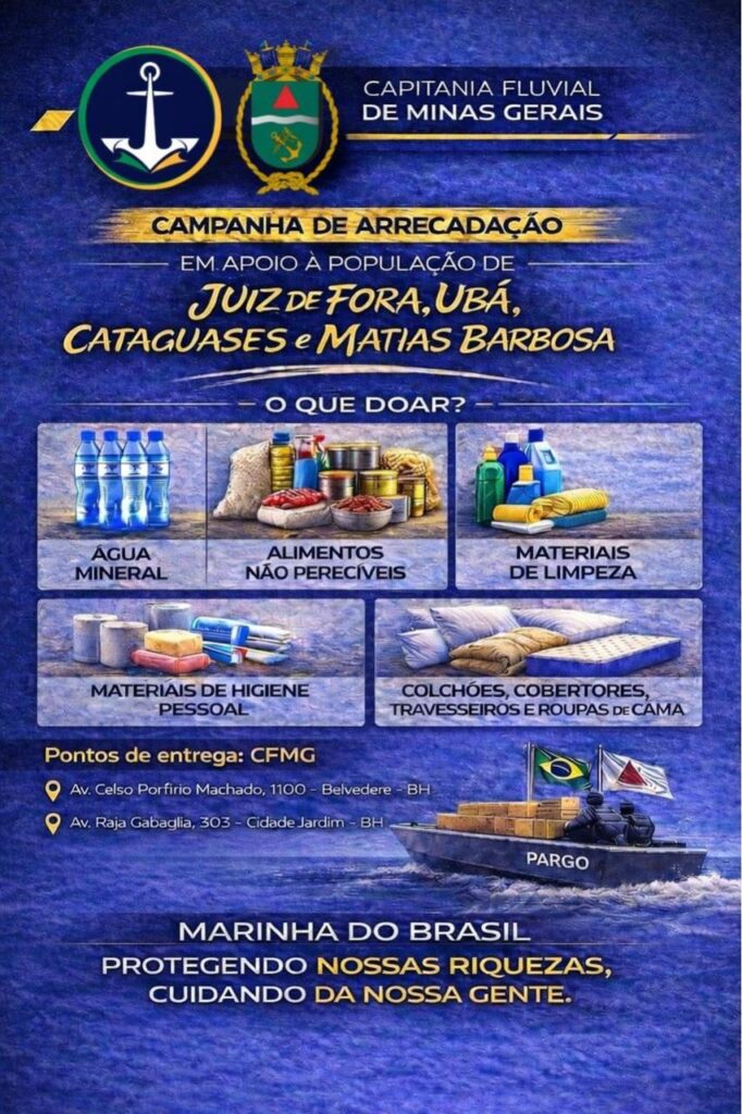 E a Marinha do Brasil (MB), representada pela presteza da Capitania Fluvial atuou com desenvoltura entre os dias 25 de fevereiro e 1° de março, fazendo valer o lema “Prontidão e Compromisso”. Atuou em apoio às ações da Municipalidade, tanto em Juiz de Fora como em Cataguases, na Zona da Mata Mineira.
