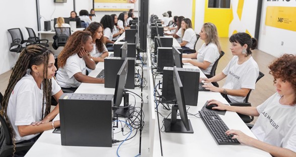 No curso de Cultura Digital, as participantes aprendem desde informática básica, passando por navegação online, uso de ferramentas de produtividade e colaboração, até a criação de conteúdo para redes sociais, segurança digital e posicionamento estratégico. A formação inclui ainda edição de imagens e vídeos, preparando as alunas para atuar em diferentes contextos profissionais.