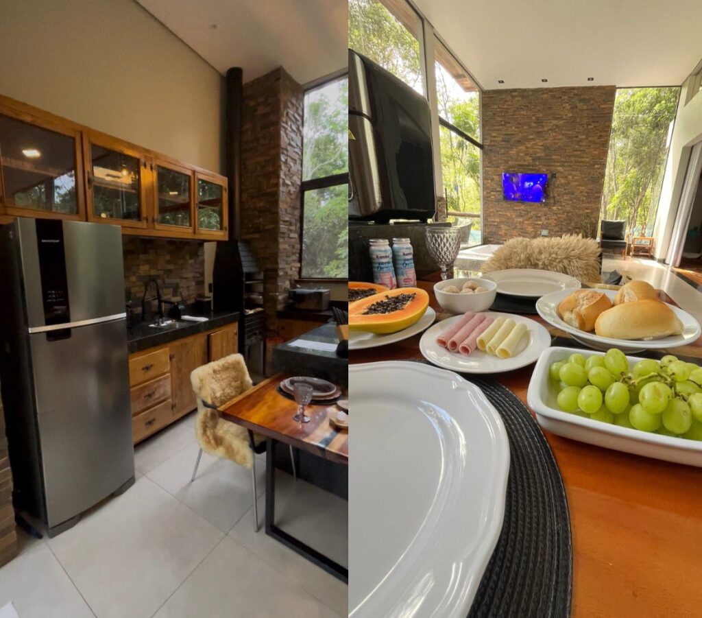 🍳 Cozinha completa e equipada com airfryer, forno, geladeira, sanduicheira, liquidificador, máquina de café Três Corações e churrasqueira