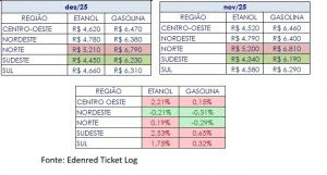 “O aumento observado nos preços da gasolina e do etanol em dezembro reflete uma combinação de fatores regionais e de mercado. No caso da gasolina, a alta foi pontual e moderada, enquanto o etanol sofreu maior pressão, influenciado por questões de oferta e demanda e pela competitividade do biocombustível em algumas regiões, especialmente no fim do ano, período de maior consumo”, explica Renato Mascarenhas, Diretor de Rede Abastecimento da Edenred Mobilidade.