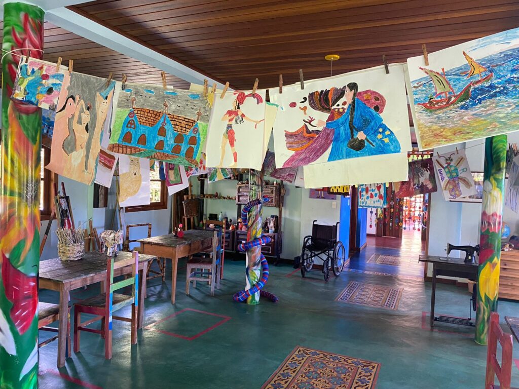 Além das oficinas realizadas no CAT durante a exposição, o Ateliê Arte Lavrinha mantém suas atividades regulares todas as sextas-feiras, diretamente na RPPN Ave Lavrinha. Deni planeja cada encontro pela manhã, considerando as necessidades, dificuldades e habilidades individuais dos participantes. A APAE de Bocaina chega ao ateliê às 13h, seguida pela APAE de Liberdade às 14h.