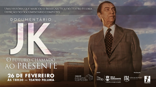 No próximo dia 26 de fevereiro, o Teatro Feluma ganha ares de cinema para a exibição do documentário “JK, o futuro chamado ao presente”, com curadoria do pesquisador Fábio Chateaubriand Guedes. A iniciativa é uma realização da Secretaria Municipal de Cultura de Belo Horizonte e da Fundação Municipal de Cultura, em parceria com a Fundação Educacional Lucas Machado (Feluma) e a Casa JK de Diamantina.