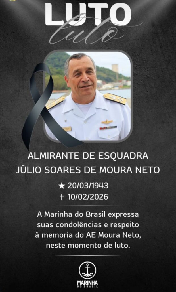 Consternação – este sentimento se apossou da Sociedade dos Amigos da Marinha (Soamar BH) ao ser surpreendida com a notícia do falecimento do Grande Chefe Naval, Almirante de Esquadra Júlio Soares de Moura Neto, ex-comandante da Marinha do Brasil, ocorrida no dia de hoje, 10 de fevereiro, no Rio de Janeiro (RJ).