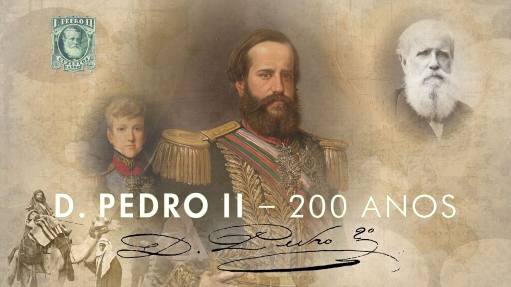 Dom Pedro II na adolescência, adulto e no exílio - créditos: Fundação Oscar Americano de SP - designer Flávio Sramingnon