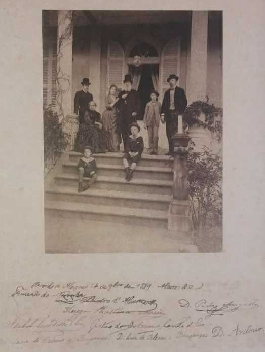 Há poucos dias, em 15 de novembro, um golpe derrubara o líder da única monarquia das Américas. Os imperiais saíram às pressas, na madrugada do dia 17. Partiram deixando para trás muitos pertences. Nas malas, havia espaço apenas para o que foi possível recolher no pouco tempo que lhes restava. Dentre os objetos, alguns livros e fotografias. Uma delas, tirada em Petrópolis, na casa de Princesa Isabel, era o último registro imagético da família Imperial no Brasil. Ainda no dia 24, na altura de Fernando de Noronha, lembraram-se de assiná-la, como um gesto de adeus.