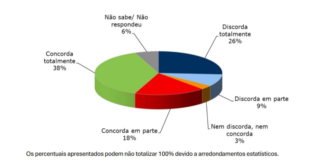 A amostra é proporcional e representativa dos brasileiros com 16 anos ou mais, elaborada com base em dados do Censo 2022 e PNADC 2024, com controle de cotas pelas variáveis: sexo, idade, escolaridade, raça/cor e ramo de atividade. O nível de confiança da pesquisa é de 95%, e a margem de erro máxima estimada para o total da amostra é de 2 pontos percentuais, para mais ou para menos.
