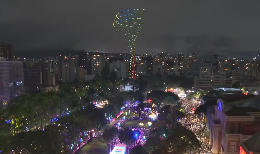 Espetáculo inédito de drones – O ápice da festa, próximo à meia-noite, contará com uma apresentação de drones inédita celebrando a chegada do novo ano. O show contará com fogos de baixo ruído, baixa emissão de fumaça e efeitos especiais sincronizados em três pontos dentro do Palácio da Liberdade. Conduzida pelo mestre de cerimônia Kdu dos Anjos, o público fará a contagem regressiva com imagens que simbolizam a força e a cultura de Minas Gerais.